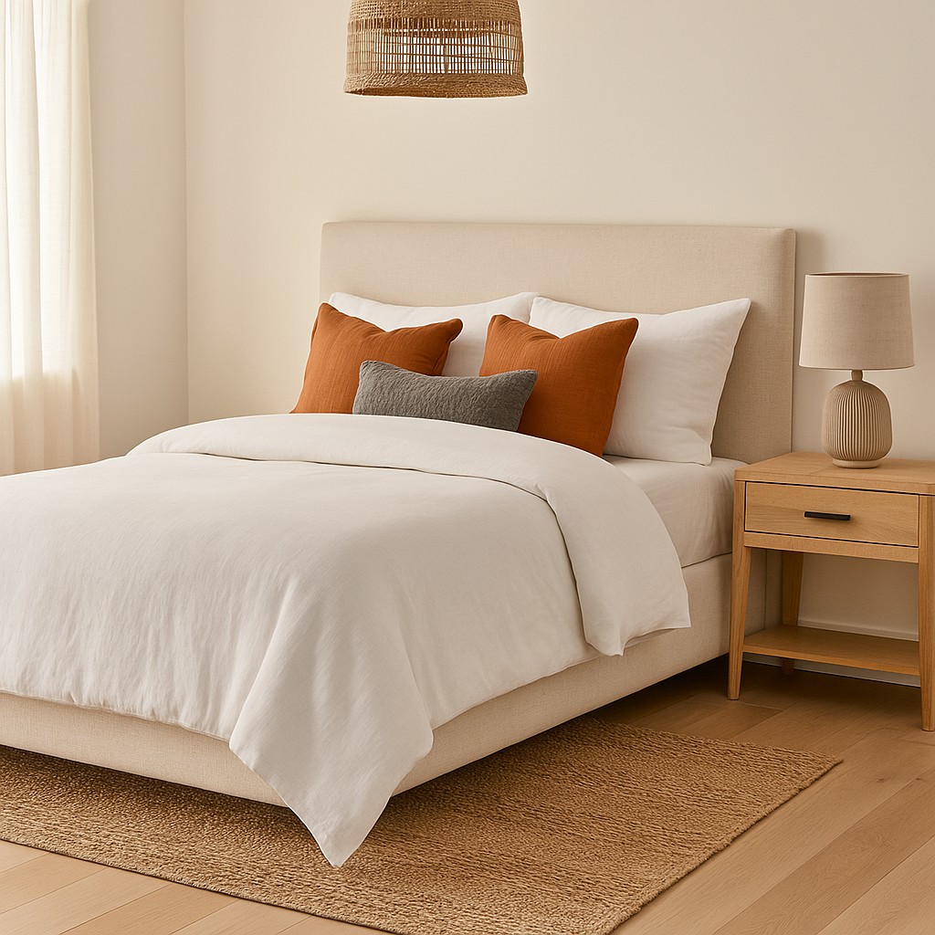 🔹 Si tu decoración es neutra, sumá un toque de color en almohadones o mantas para resaltar la textura.